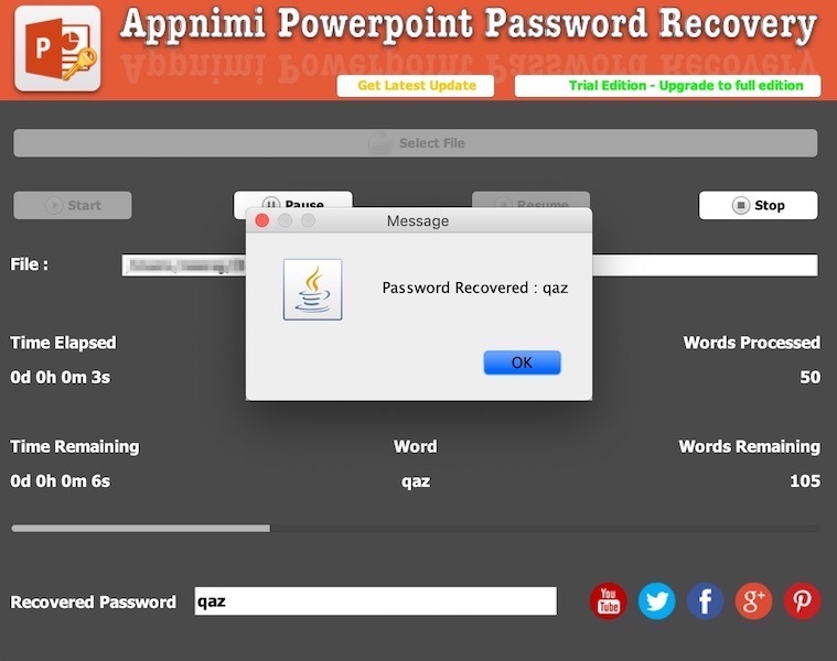 Appnimi Powerpoint Password Recovery is a utility which will help you to recover passwords of protected powerpoint files.